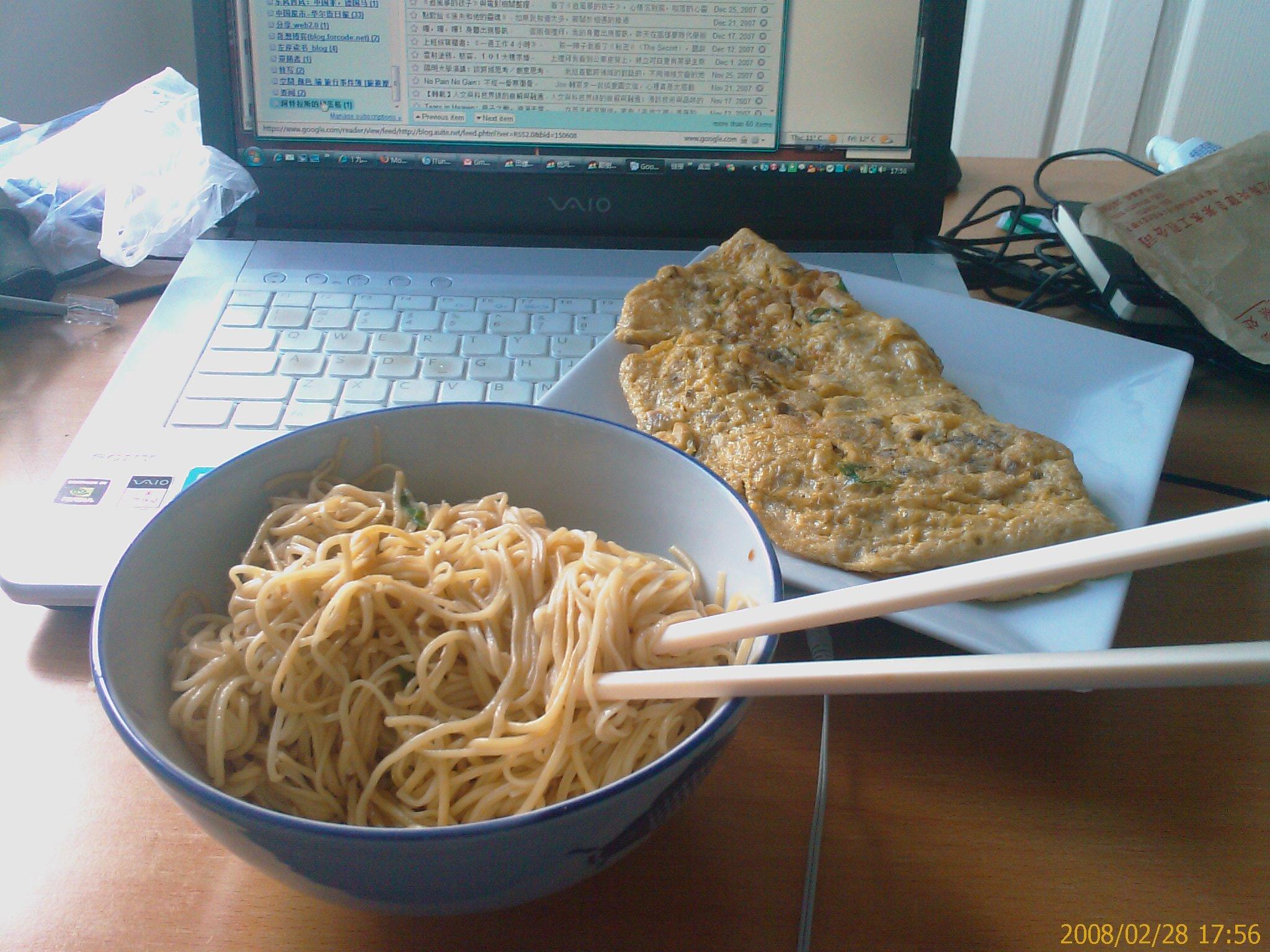 今天晚饭,炒面和鸡蛋饼