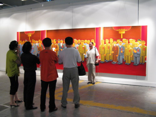 这种所谓的历史题材不少。这些年好些二大佬就转型于此。一方面觉得国际上认这个,另一方面,也觉得自己书写了历史。画展上的效果就是,很多人跟这些开国大典合影,也恍若自己进入了历史。