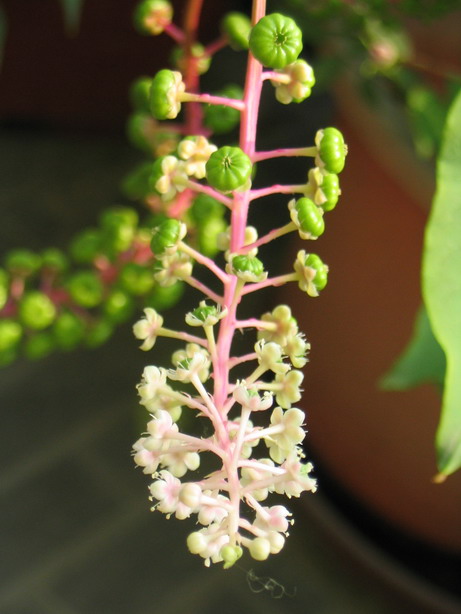 今年夏天,对花园照顾得不够,太阳花都没栽,不过,也有意外之喜.花盆里长了棵肥大的野生植物,开花结果,都不认得.但也有种特别的漂亮.